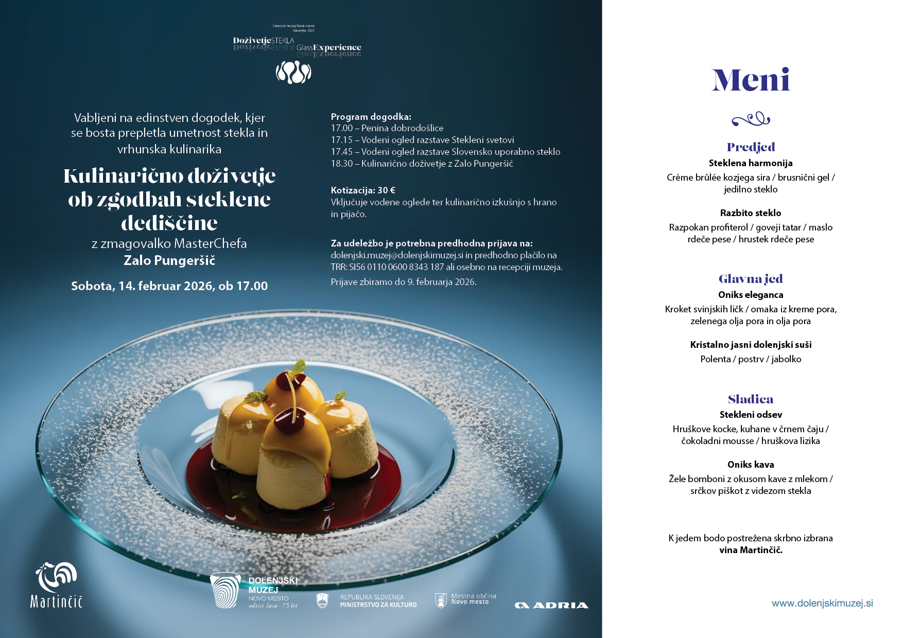 Na slovenski kulturni praznik in ob izteku projekta Doživetje stekla 8. februarja 2026 vabljeni v Dolenjski muzej, Jakčev dom ter na Bazo 20. Dolenjski muzej, Jakčev dom 9.00-19.00 Vstop je prost in udeležba na dogodkih brezplačna. Katalogi in publikacije po znižani ceni. DOLENJSKI MUZEJ 10.00 in 15.00 Stekleni svetovi, Galerija vodi kustosinja dr. Petra Stipančič […]
