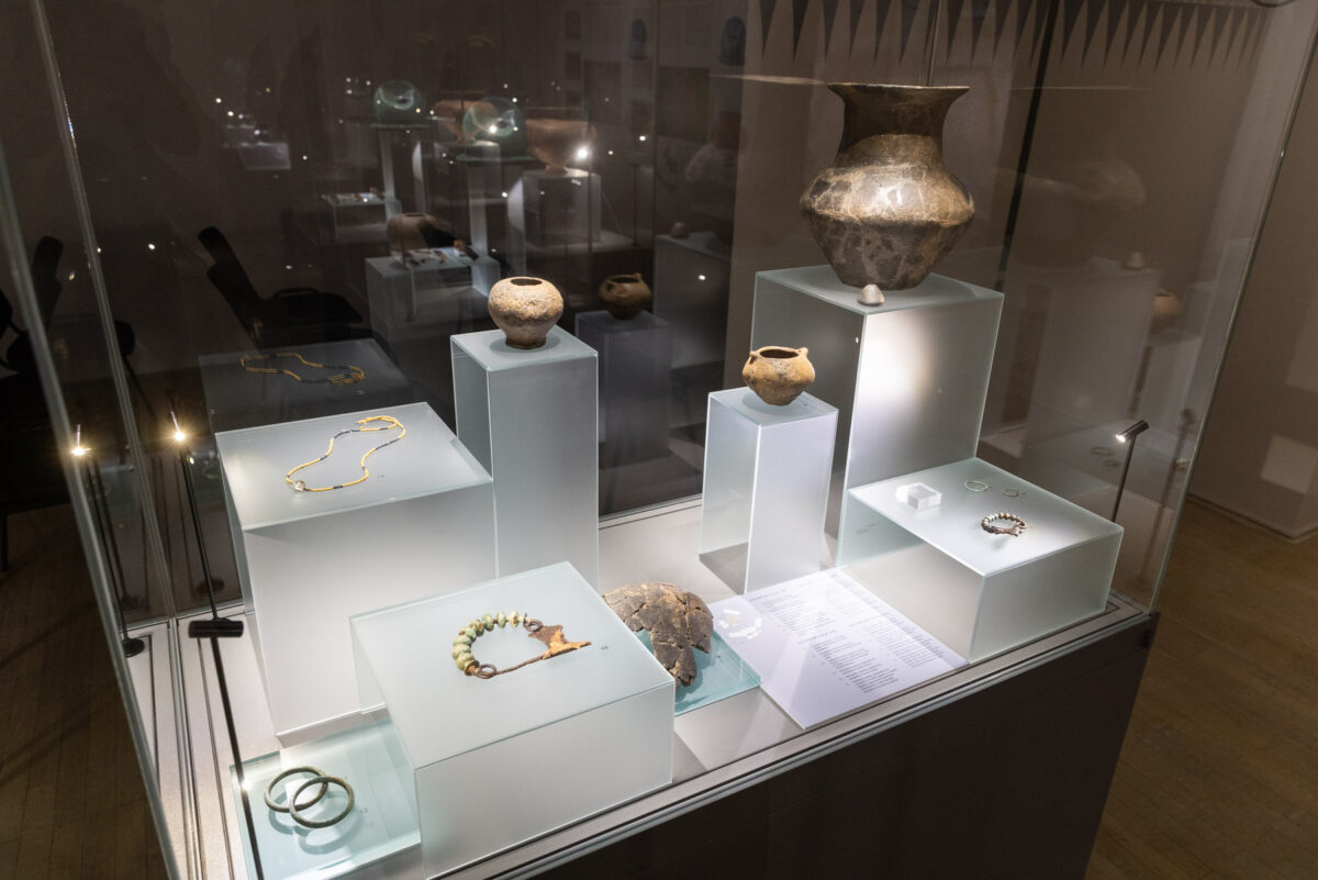 Na razstavi prvič predstavljamo arheološko gradivo gomile LXVI, izkopano leta 2018 na Kapiteljski njivi v NM, ki je bilo pred kratkim restavrirano tako v domačih restavratorskih delavnicah, kot v delavnicah RMZM v Mainzu.