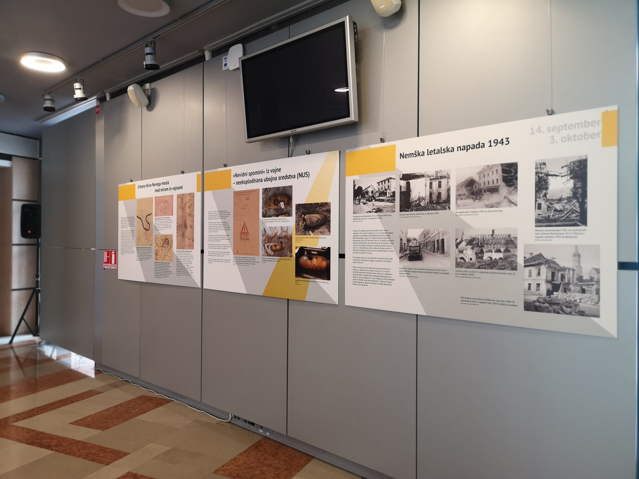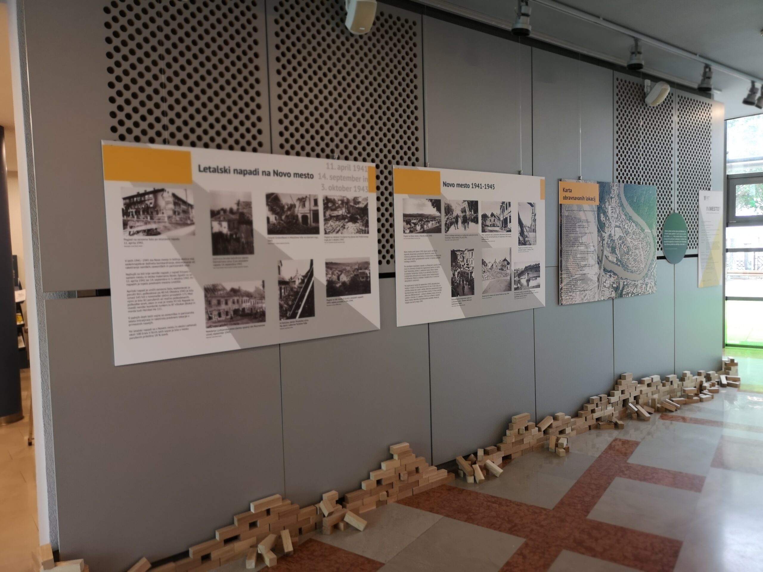 Na zgodovinski razstavi, ki smo jo pripravili v letu 2024, smo s predmeti, panoji in interaktivno vsebino obravnavali nemške letalske napade na Novo mesto v času 2. svetovne vojne. Predstavili smo vzroke in posledice bombardiranj, tako človeške žrtve kot tudi mesto. Orisali smo mesto v ruševinah ter prikazali medvojno in povojno obnovo.
